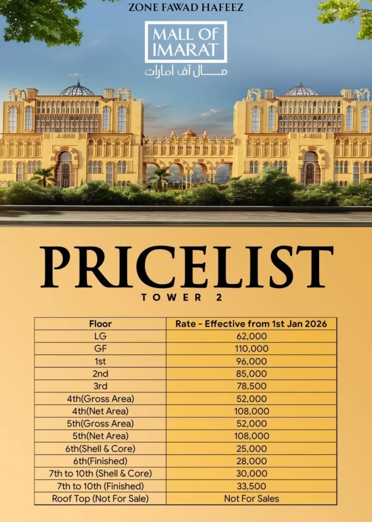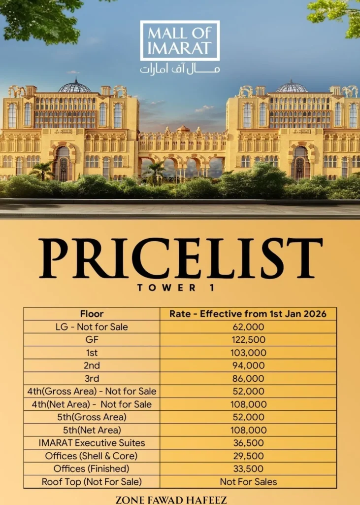 This exuberant masterpiece is set to redefine luxury shopping in the twin cities, becoming the benchmark for opulence. The architecture not only sparks awe in visitors but brings them closer to Arabic heritage through its several monumental sites. This luxury project is CDA-approved and is being developed by well-known builders, the IMARAT Group.